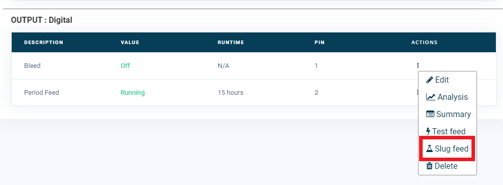At the end of the SLUG FEED (duration in minutes) the controller will automatically revert back to the programed operation