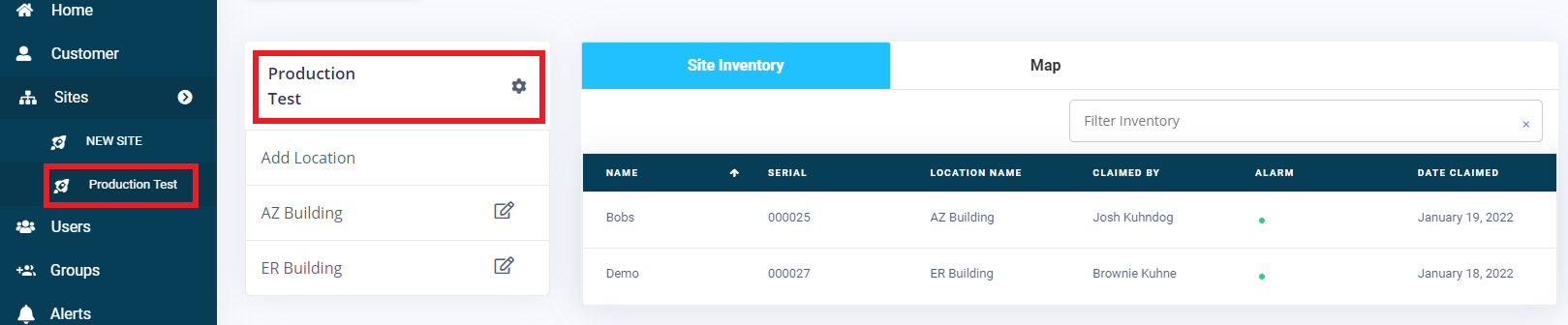 From the SITES page the Page will provide a SITE INVENTORY including all devices found in all locations at the selected SITE