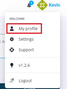 1. On your computer, on the upper right corner of the home page, click on your Name to open the drop down menu and select "My Profile"